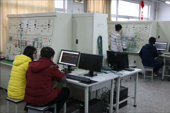 电力系统综合自动化实验室主要实验设备包括:发电机、升压变压器、线路、负荷变压器、工厂变微机装置、无穷大系统、负荷等电力设备组成。开设的实验有:同步发电机并列、同步发电机励磁控制、单机无穷大系统稳定性、电力系统暂态稳定、单机带负荷、复杂电力系统运行等若干实验。实验能够反应现代电力系统的高度自动化、信息化、数字化、智能化等特点,能够实现电力系统检测、控制、监测与故障诊断等实训式模拟电力系统,有利于提高电气类学生电力系统的认识,加强学生的动手能力、分析和解决问题的能力。