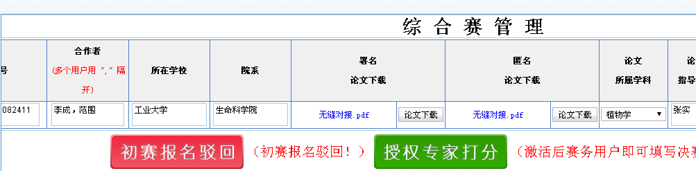 针对各大高校院系,操作简单并实用性强的竞赛信息管理系统。它的主要任务是实现大学生竞赛报名、打分评审、竞赛成绩等竞赛工作的信息管理。它包括用户注册、单项赛管理、综合赛管理、专家评审管理 、专家库管理、赛事管理、系统后台管理等与竞赛信息管理相关功能。
